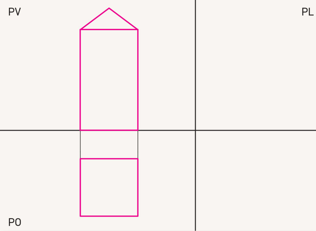 1. Partiamo da PV: disegnare un prisma con base 4 cm e altezza 7 cm. La base della cabina sarà un quadrato di 4×4 cm.